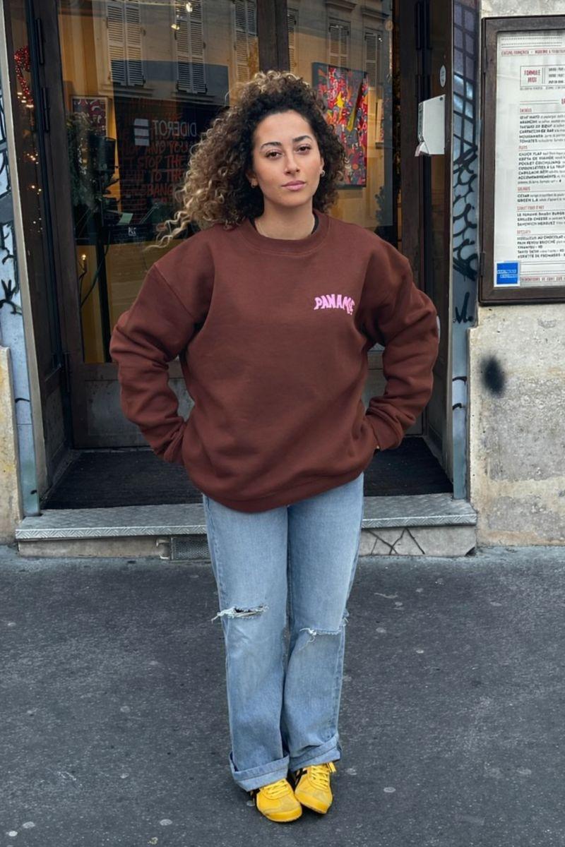 Sweat-shirt PANAME Art Café en coton épais, coloris marron chocolat. Coupe confortable et tendance. Doux, chaud et stylé, parfait pour un look urbain décontracté.